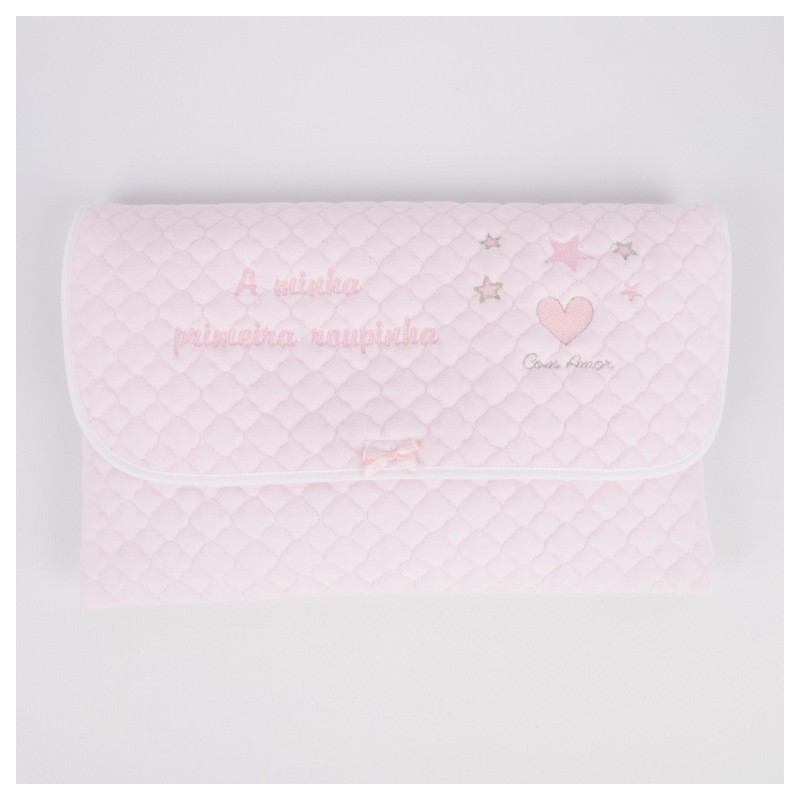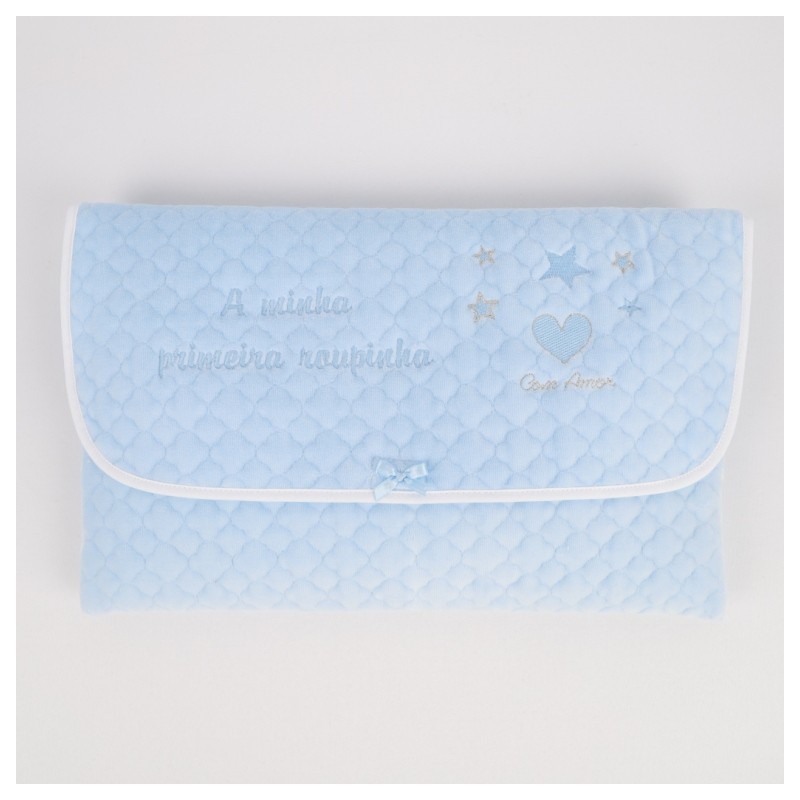 Bolsa de veludo para levar a roupinha do bebé para a maternidade. Poderá utilizar posteriormente para guardar mudas de roupa para o bebé sempre que tiver de sair.